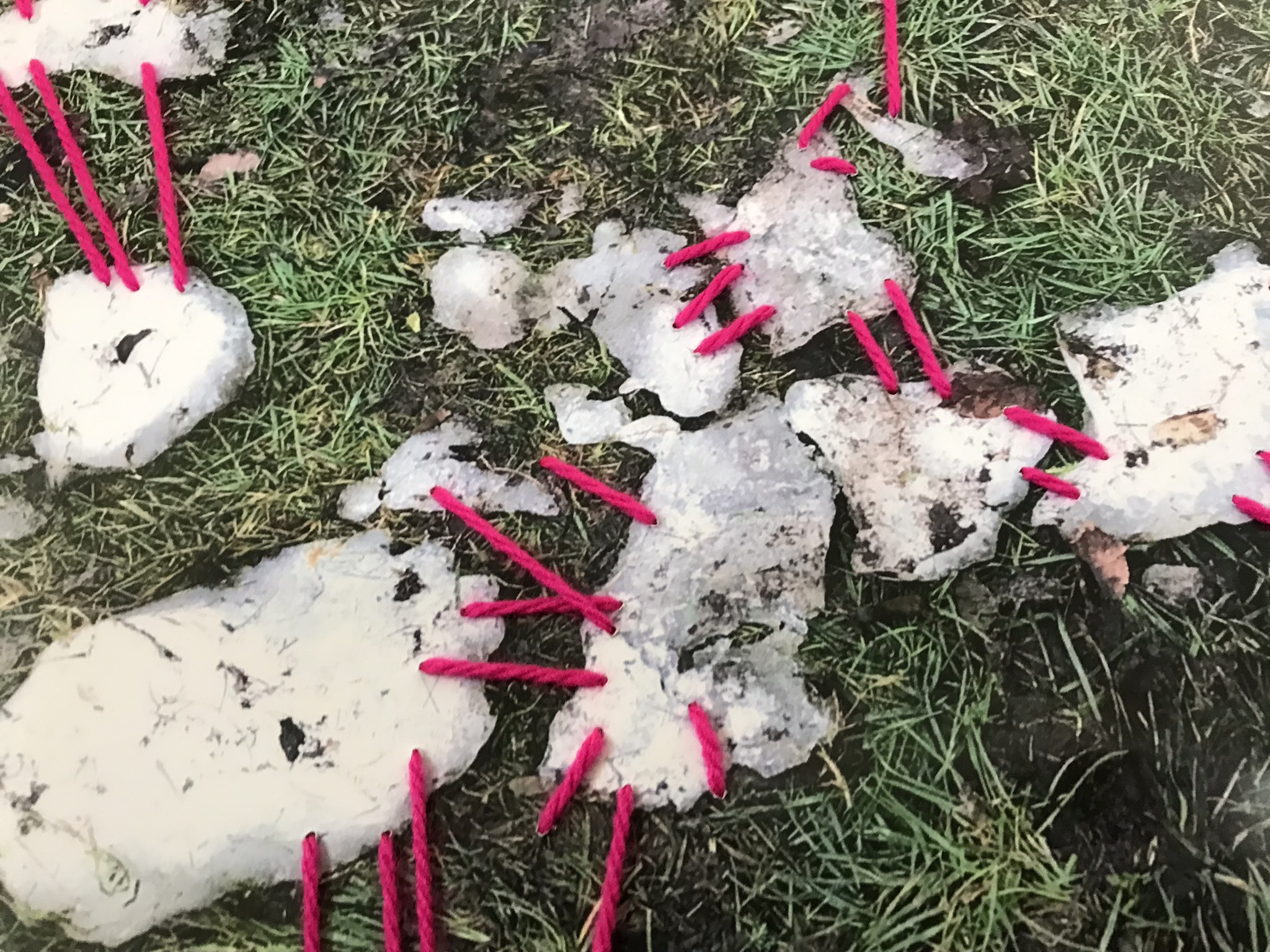 Alles vergeht. Alles. Verschwindet, verblasst, zerfällt. Ich will mich damit nicht abfinden. Ich halte alles fest. Ich stopfe die Lücken, verbinde Teile zu einem Ganzen, befestige. What? Der schmerzhafte Stich, den dieser Vorgang des Erinnerns auslöst, findet Ausdruck in jedem Stich mit der Nadel durch das Papier, durch das Objekt. The Form!